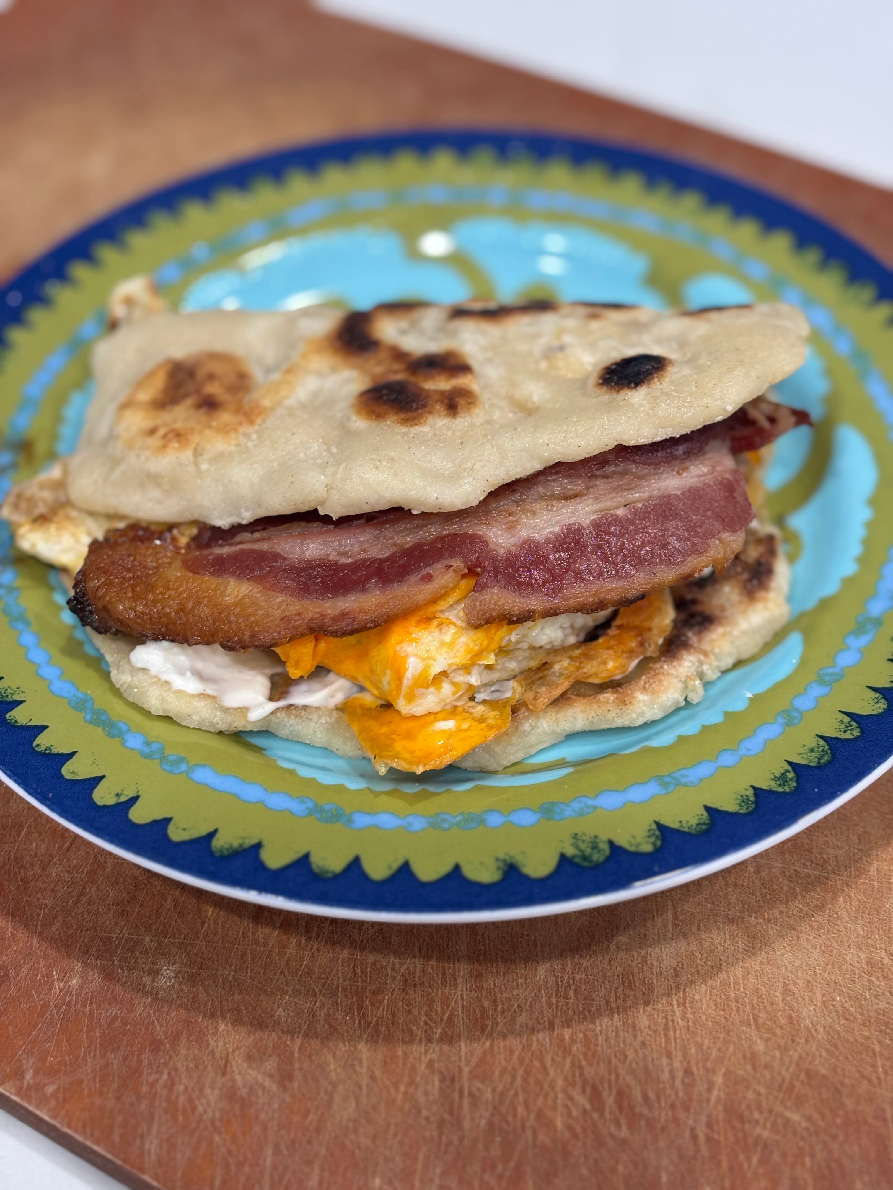 I thought I’d share my current go-to recipe: my 4-ingredient naan bread. I make this every single week—sometimes for breakfast, sometimes for lunch, sometimes for dinner. Breakfast? I turn it into tacos with eggs and bacon. Lunch? A wrap with leftover meat and greens. Dinner? It becomes the perfect “bread on the side.” And with Thanksgiving tomorrow, it’s the perfect leftover sandwich bread maker! Basically… this naan is wildly versatile. And ridiculously simple. Here’s the recipe: